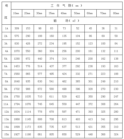 3.5 最大磁場(chǎng): H≥2T 工作氣隙5mm時(shí),